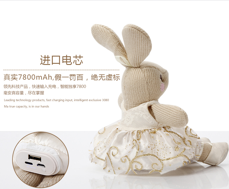 热卖芭蕾兔可爱迷你充电宝苹果小米通用卡通移动电源萌生日礼物布